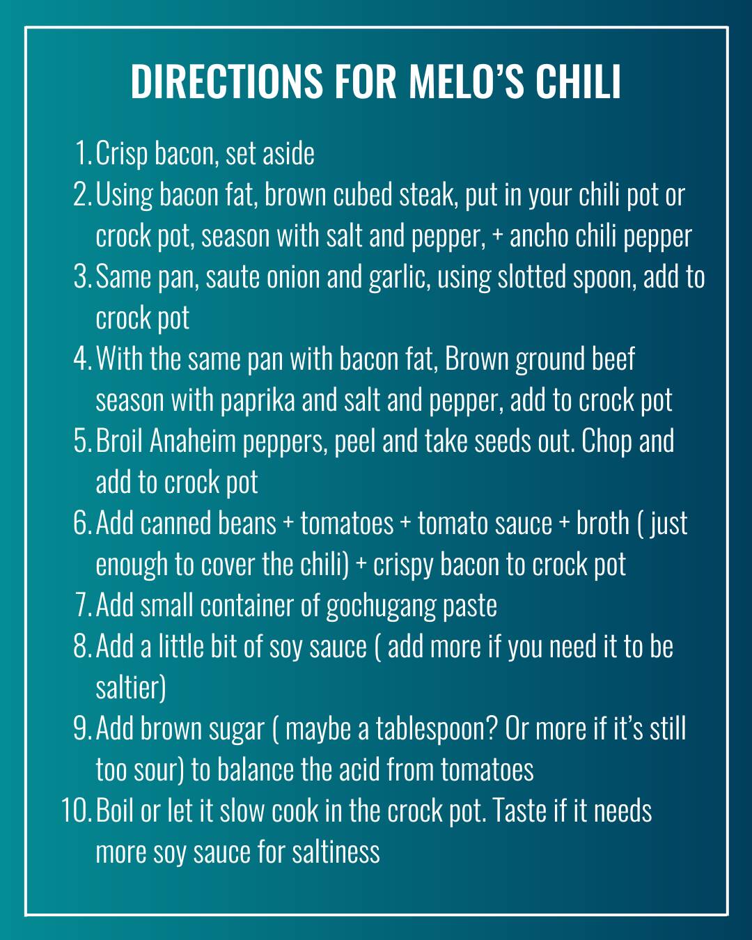 Melo’s Chili