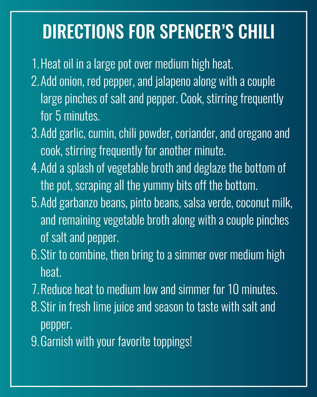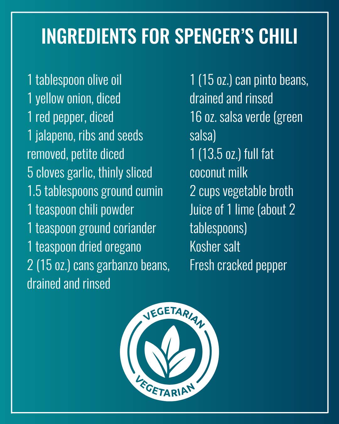 Spencer’s Vegan Chili