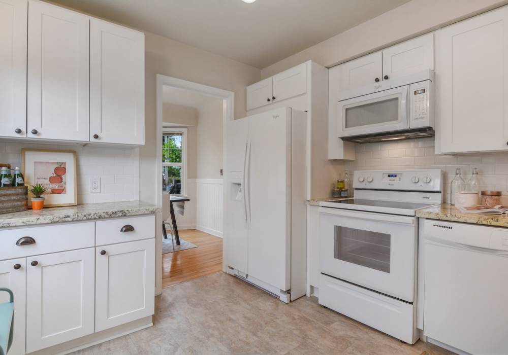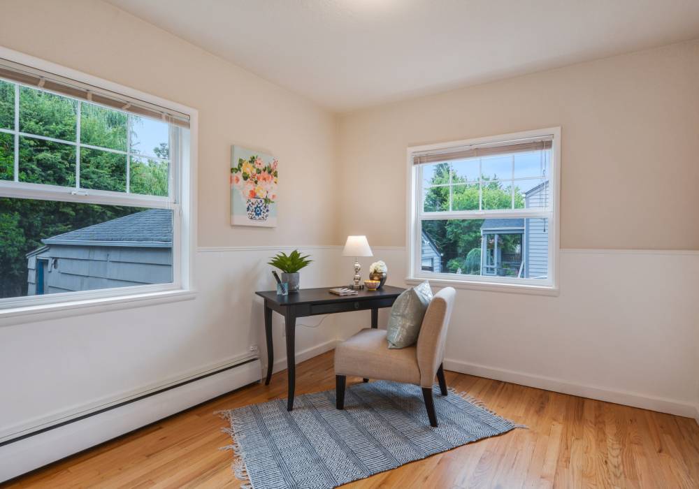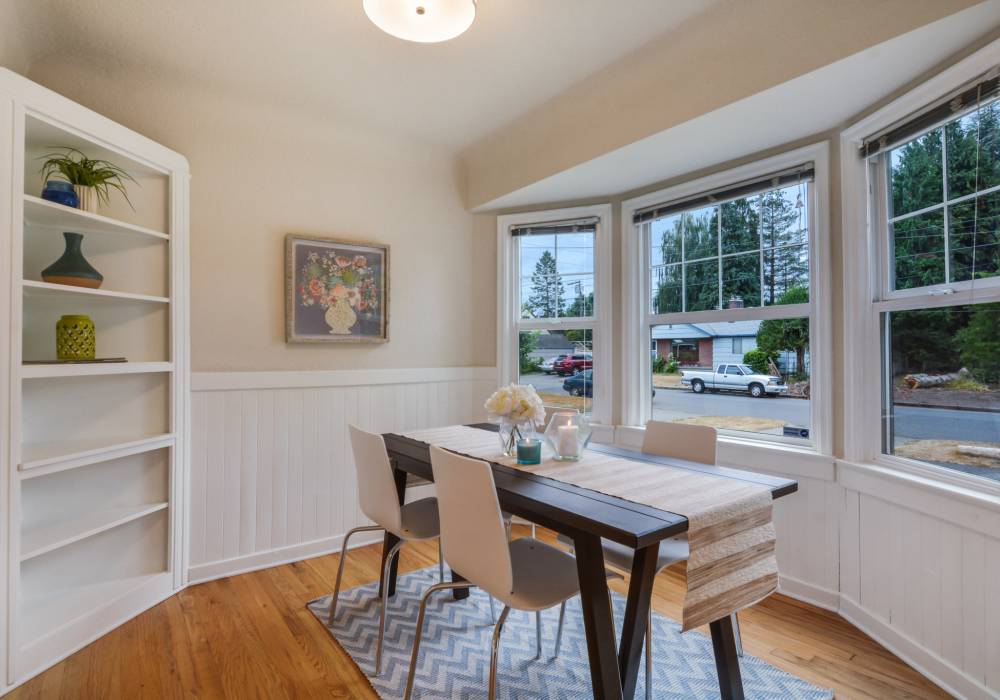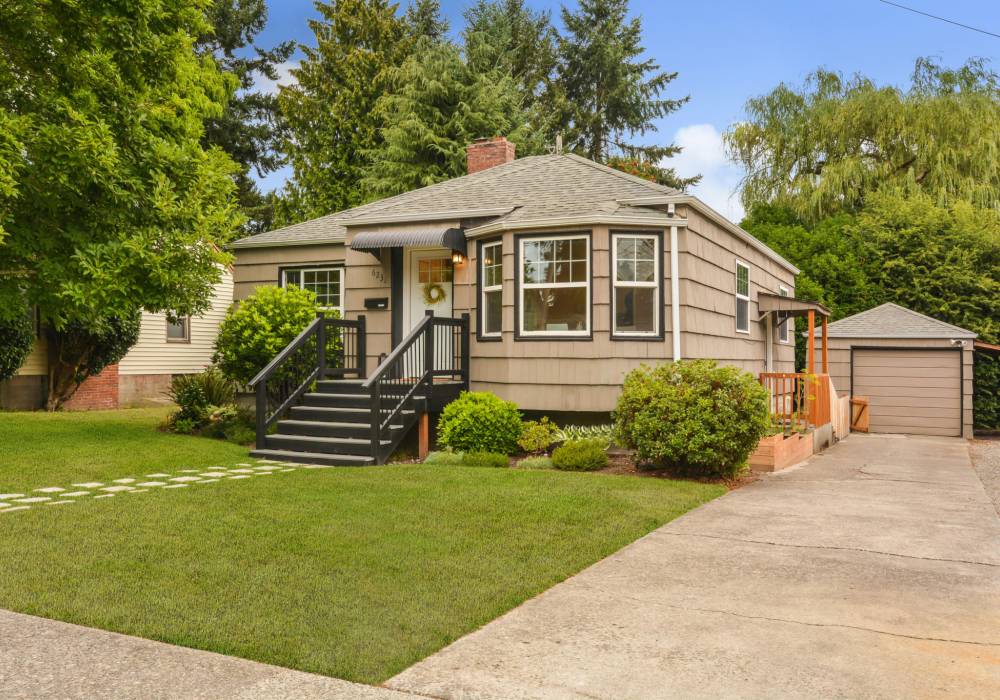 Welcome to this well built and lovingly maintained home! The main floor’s attractive updated bathroom, windows and kitchen bring modern comfort while the hardwood floors, covered ceilings, fireplace, bay windows, wainscot, and vintage hardware preserve original character. This home includes a finished basement with bedroom and bathroom that greatly expands the living space. Outdoor mature landscaping and private backyard patio round out the amenities of this home. It is located 5 minutes or less to groceries, library, I-5, restaurants, and parks.