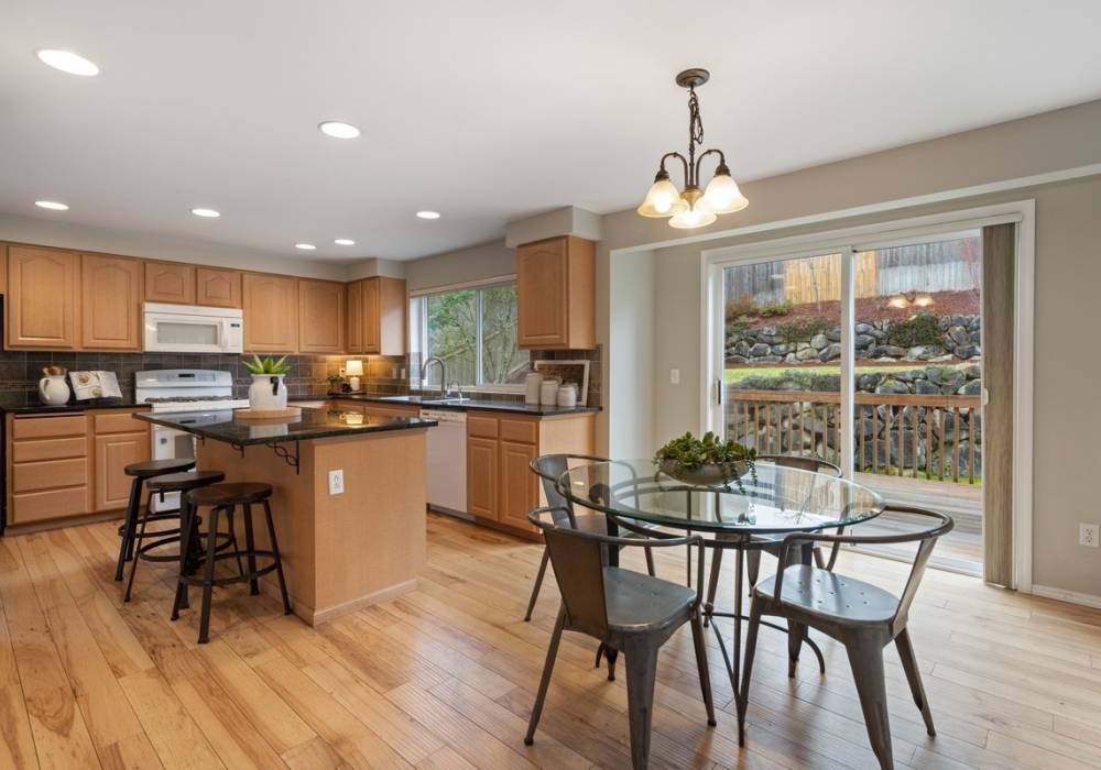 When we asked the sellers what they’ll miss the most about this home, they said “The yard in the spring with all the flowers, birds and rabbits.” They also provided a little insight as to what they’ll miss about the outdoor space and the neighborhood, “There are coral maple trees, hydrangeas, peonies, tulips, rhododendrons and roses. Very friendly neighbors, lots of kids and there are always great 4th of July Fireworks.”