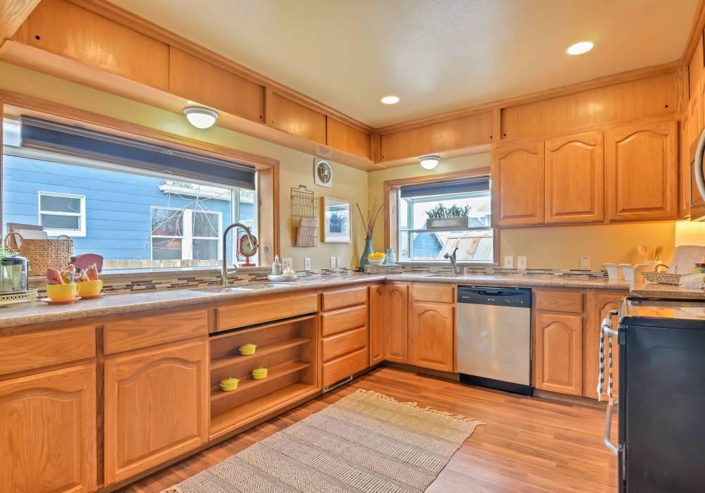 Bright and solid, this home with its large two-car detached garage with RV/boat parking was remodeled in 2014 and sits on a quiet street just a block from Alling Park. Fully fenced, surrounded by raised beds and garden paths, there’s even a paved driveway, gated at both ends. Inside the comfortable layout includes full baths on both floors. Box windows for herbs, granite counters, a second sink and lots of cabinets complete the kitchen. Close to Wapato, groceries and I-5 access.