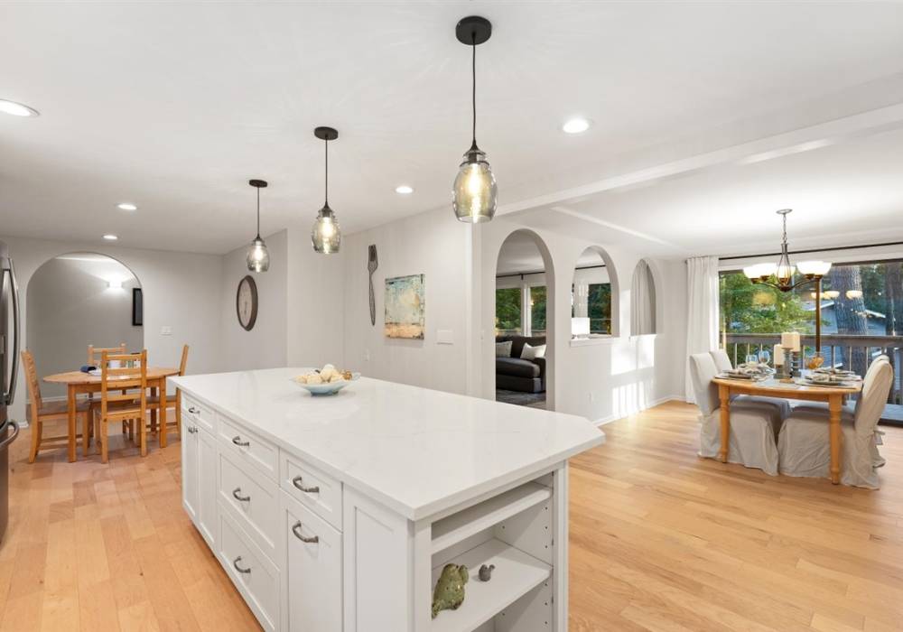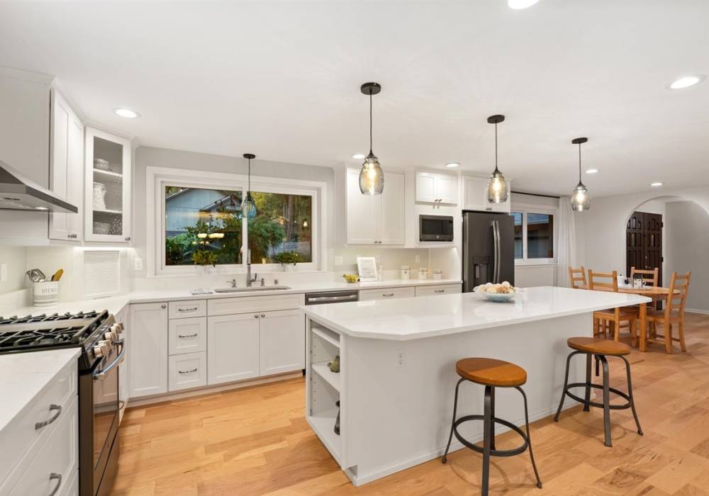 “The birds - there are a lot of different birds singing in this neighborhood, and lots of hummingbirds. The hummingbirds will come very close if you hang a feeder or attractive plant (they love fuchsias). The hydrangeas out front are beautiful in the summer. We love that the yard is landscaped in a low maintenance way. Sitting on the back deck while the last light of the afternoon streams through the trees. The house feels super private despite having nearby neighbors. How quiet it is - you can hear the birds singing or the kids playing in the cul de sac behind us. Walking the dogs down to the little private park. THE KITCHEN!!