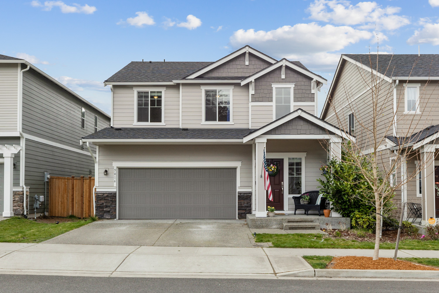 A dramatic, two-story entrance offers views of the loft and windows that light the path to your perfect great room escape. The living space with a modern fireplace, open dining area, and inviting kitchen are enhanced by designer chosen fixtures and finishes, lending a bright, serene aesthetic. Upstairs, stay productive by using the loft as a home office, or cater to your hobbies and create a library and reading nook, gaming space, or craft room. The upper level laundry offers convenience while the primary suite and two comfortable secondary bedrooms provide space to rest and rejuvenate. Close to Lacey shopping, dining, parks, and trails. 25 minute commute to JBLM. 13 minutes to Downtown and Historic Oly.