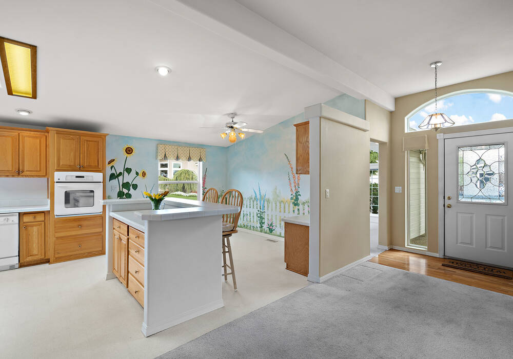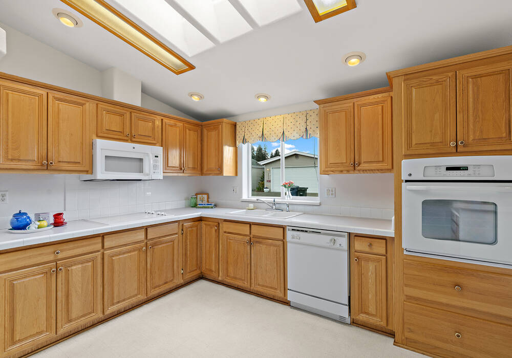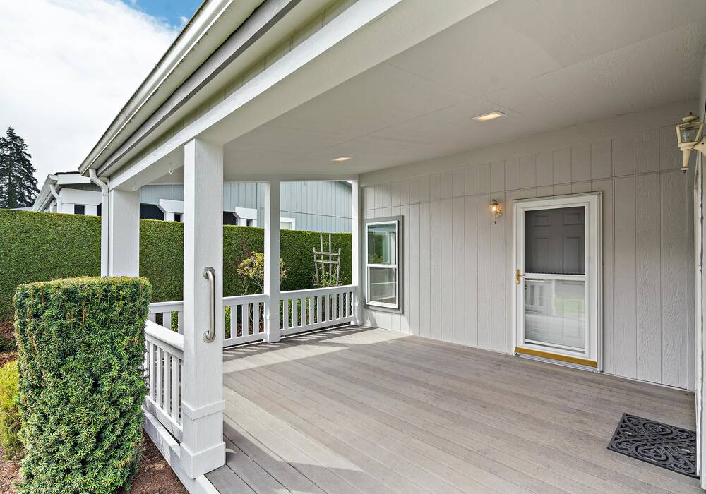 Offered for people 55+, this Harvest Gate single-level home is defined by its vaulted-ceiling fireside living area with sliding doors to the covered deck, a spacious eat-in kitchen and ease of access to Puyallup’s farmers market, fair grounds and dining. It’s not far from the museums and breweries of Tacoma either. Own your home, lease the land. Enjoy a pet-friendly private fenced lawn and garden. Inside it’s all yours from the primary suite—with its walk-in closet, ¾ bath and door to the deck—to the guest room, front room, laundry and 2-car garage. Invite friends over, host dinner, throw a game night. Amenities include full-service RV parking, a clubhouse with billiards, pickleball, fitness center, kitchen, library, event space and more.