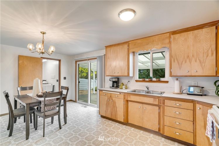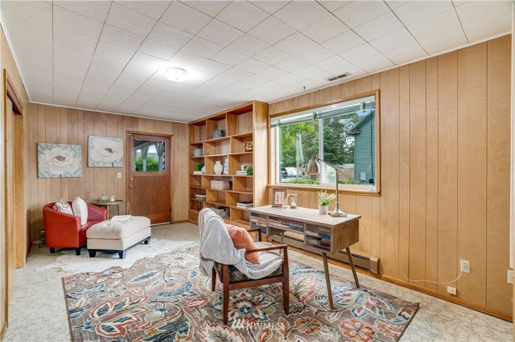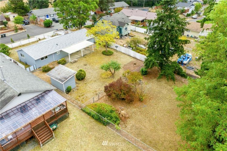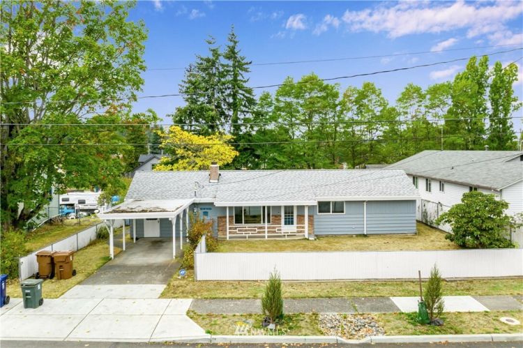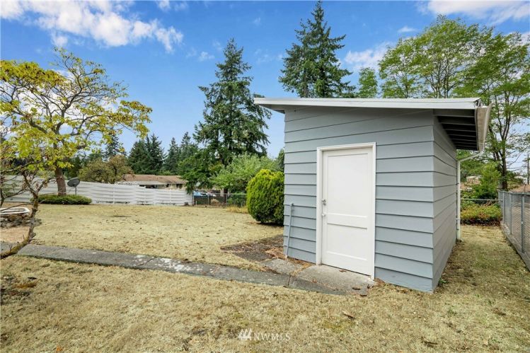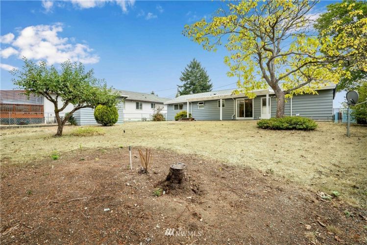 The search is over! Lovingly well maintained single story home in South Tacoma on a large 13,000+ SF lot. Large windows throughout allow for an abundance of natural light. Cozy up to the wood burning fireplace in the living room. Don’t miss the large bonus room with built in bookshelves, closet and its own entry that make for the perfect den/office or guest space. Utility area with lots of cabinet and shelf space. Kitchen with eating area leads to a covered patio. Huge backyard is fully fenced and separated off into 2 large sections...ADU opportunity? Several recent updates include a new roof, exterior paint, and upgraded electrical panel. Great location minutes to shopping and restaurants. Easy access to freeways (Hwy 16).