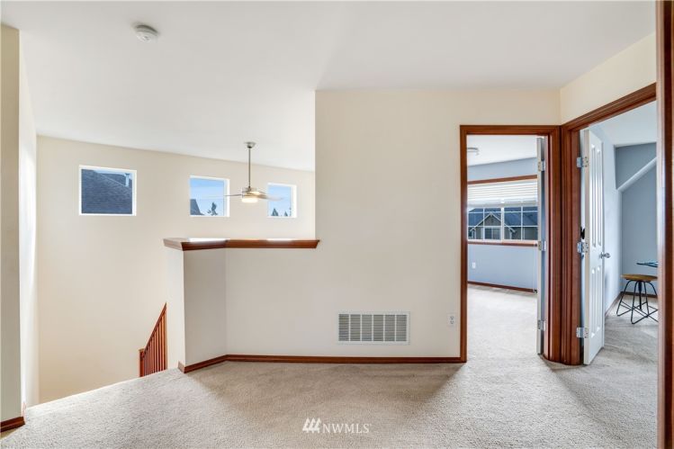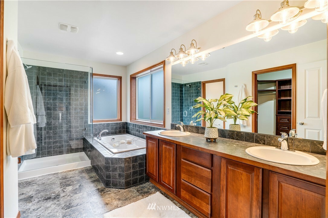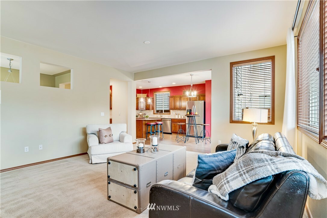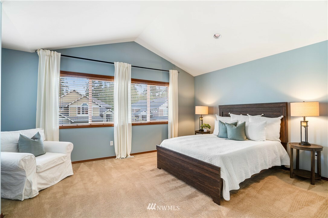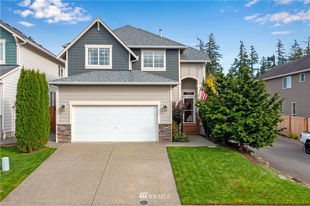 Meticulously cared for home in desirable Lea Hill community close to shopping, HWY 18, parks, schools & golf course. Look no further for quality craftsmanship, thoughtful updates & wonderful floor plan. Main floor features spacious entry with vaulted ceilings, large eat in kitchen, open to living room flooded with natural light & gas fireplace. You will also find an office/den perfect for our world of work-from-home. Upstairs boasts a generous sized bonus room, 3 bedrooms & stunning primary bedroom with vaulted ceilings & private 5 pc bath. Fresh paint, updated lighting, professional landscape design, custom dog run & corner lot! Heat pump, XL/Deep 2 car garage & private, fully fenced back yard.