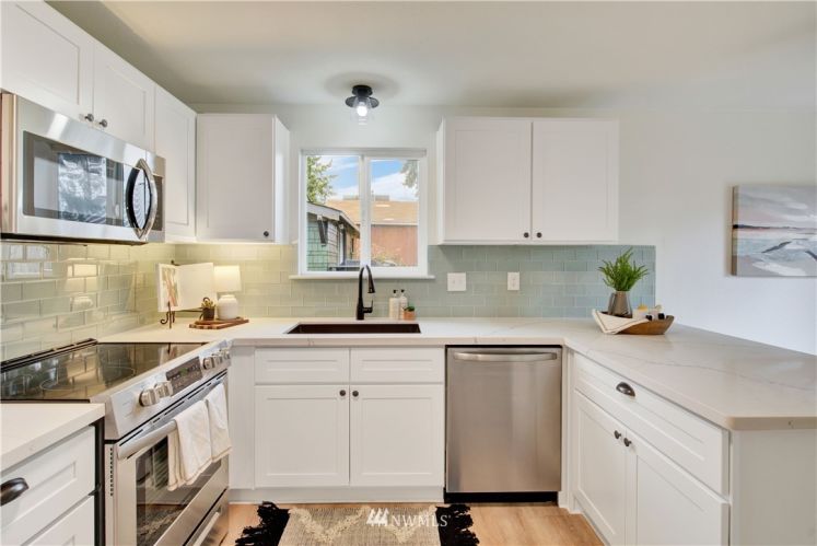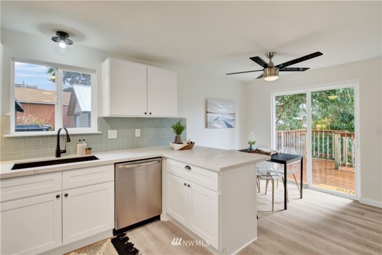 This immaculate single-level, Central Tacoma home is equipped with stylish upgrades and optimal convenience for work and play. Attached 2-car garage, RV parking, and back deck that spans the length of the home. Fully-fenced, XL yard encourages hobbies and greater enjoyment of the outdoors. Newly outfitted kitchen with white shaker kitchen cabinets, quartz countertops, stainless steel appliances, luxury vinyl tile flooring. Custom Jatoba, Brazilian Cherry hardwood floors in all 3 bedrooms. The primary bedroom has an attached bath with a rain shower, body sprays, and heated floors - it is your very own spa! 4 blocks from 6th Avenue, .7 miles to Cheney Stadium, and 5 minutes to the freeway. Welcome to your modern home in the city.