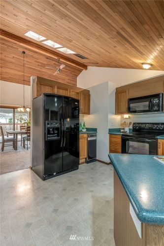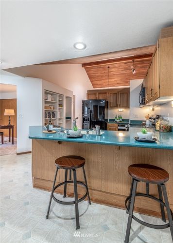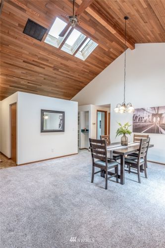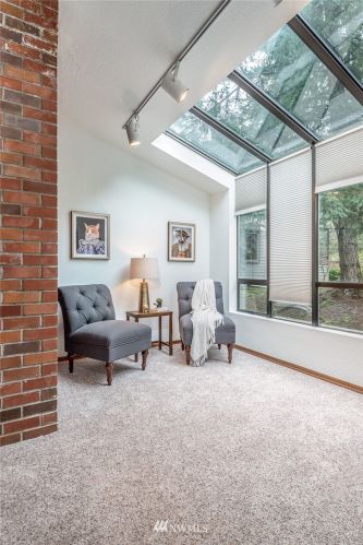 If you are looking for a quiet setting with territorial views of nature out every window, this is it! A rare opportunity to own a one-level condo with NW Contemporary architecture built in 1984. The home has been meticulously maintained inside, and the HOA maintains the outside. Enjoy many special features; vaulted wood-beamed ceilings, a primary suite, a light-filled sunroom, two additional bedrooms, a wood-burning fireplace, an open concept kitchen, two-car garage, and a spacious outdoor deck. New roof and garage door in 2019. It’s all ready and waiting for you!