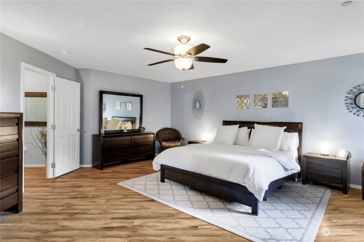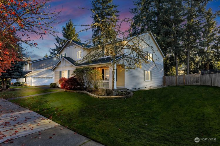 With 3,372 sq ft of finished space + a 3 car garage on over 1/4 of an acre, this sizable DuPont property has room for days. Large windows welcome natural light in while providing a connection to the beauty outside. French doors flow from the great room to a fully fenced yard, lined with mature trees, offering privacy and proportions difficult to find in this beloved Palisade Village neighborhood. Inside, each bedroom features a walk-in closet and rooms and storage options are generous throughout. Meticulously maintained with upgrades and recent updates including crown molding, an updated kitchen, and a completely remodeled, stunning primary bathroom. Close to JBLM, parks, miles of trails, and DuPont's Town Center. Easy access to I-5.
