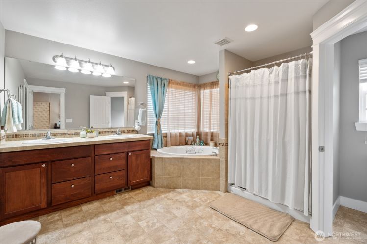 Experience the best of Spanaway living in this stunning Craftsman-style home featuring 4 bedrooms and 2.5 bathrooms. Stay comfortable during the summer months with air conditioning as you enjoy an expansive open floor plan, perfect for entertaining. The chef’s kitchen has granite countertops, a large island, stainless steel appliances, and double ovens. Bonus living areas on both levels provide flexible space for work or play. Relax on two covered outdoor patios—one on the main floor and another off the elegant primary suite, which includes a 5-piece ensuite and generous walk-in closet. New interior paint, high-end millwork, and abundant natural light. Ideally located near JBLM, HWY 512, schools, parks, and local amenities. Welcome home!