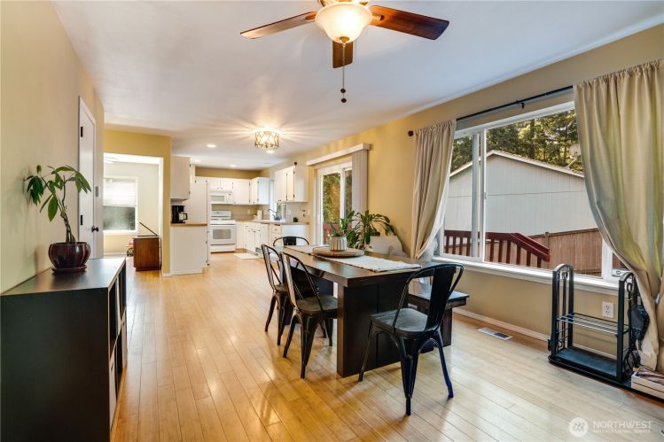 Nestled in a serene woodland setting, this classic corner-lot home offers the perfect blend of charm and functionality. Step inside to the warm wood floors and open-concept living room, dining room and kitchen on the main floor creating an inviting space for everyday activities and entertaining. With 3 comfortable bedrooms plus a versatile bonus room (or 4th bedroom!), there’s room for everyone to spread out. Enjoy the fully-fenced .23 acre lot or get out and explore your peaceful surroundings with miles of community trails, private lakes, beaches, and parks just outside your door. A great opportunity to own a well-loved home amongst the natural beauty of the Pacific Northwest, all just a brief commute to JBLM, Tacoma and Olympia.