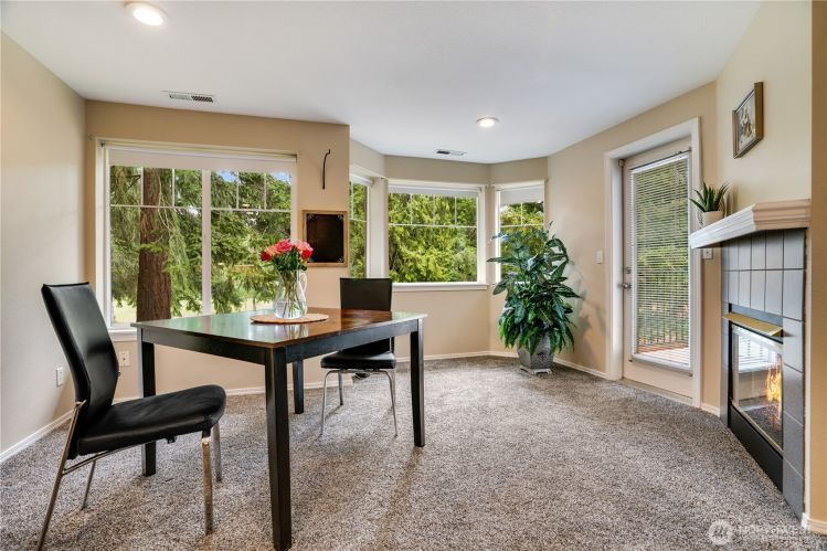 This lovely townhome sits right on the 18th fairway of Northshore Golf Course, offering serene views year-round. Inside, enjoy vaulted ceilings & thoughtful updates throughout including newer appliances & soft-close solid wood kitchen cabinets. Spacious layout features 2 bedrooms PLUS a large loft perfect for an office or bonus rm. Both bedrooms have walk-in closets and the primary ensuite shower has been stylishly updated. Enjoy the breakfast nook & family room with two-sided gas fireplace, private deck, two-car garage, newer HVAC + water heater, and a CLEAN inspection report. Conveniently near I-5, 167, and 509 with easy access to trails & golf clubhouse. Pets are welcomed at The Links, in fact there is a dog park just across the street!