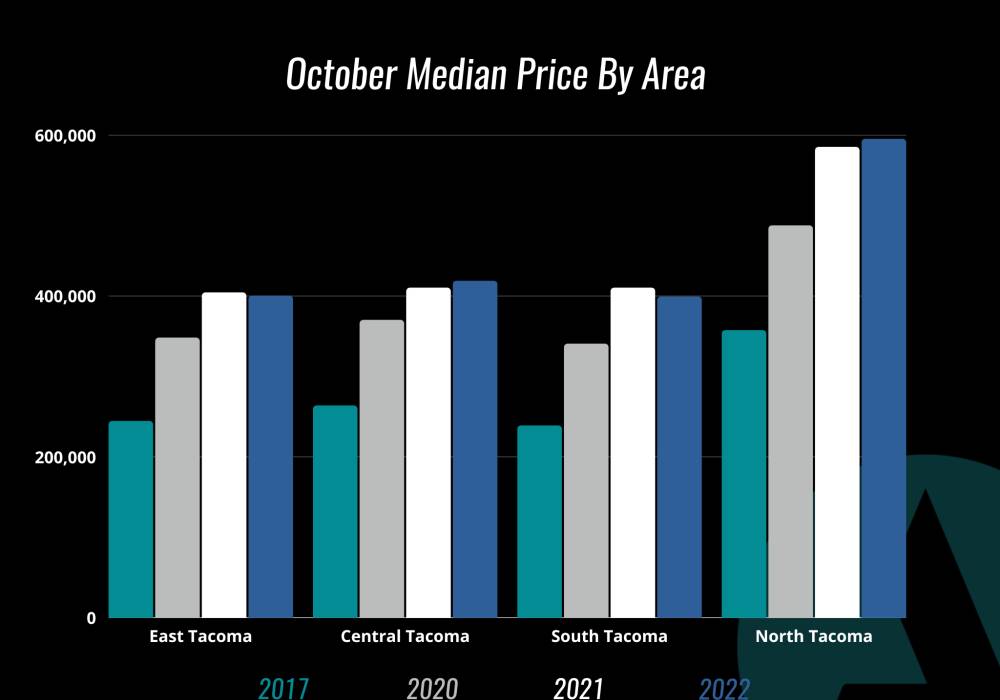 This year especially, we have followed housing data in the micro; a day-to-day (or sometimes month to month) fact finding cycle that finds us in a reactionary mindset. Let’s take a look at how each area of Tacoma has shifted over the last two years in the month of October.